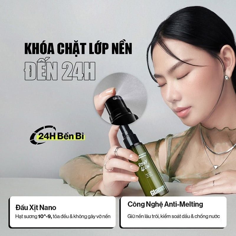 • 02 Dewy Glow: cố định lớp trang điểm 24H, tạo hiệu ứng da căng bóng, ẩm mượt.